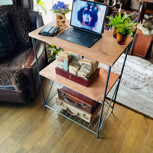 - 机・テーブル > サイドテーブル・ナイトテーブル・ローテーブル > シェルフ ラック アイアン家具 ハンドメイド オーダーメイド 男前家具 アイアンラック シェルフ アイアン家具 ハンドメイド オーダー